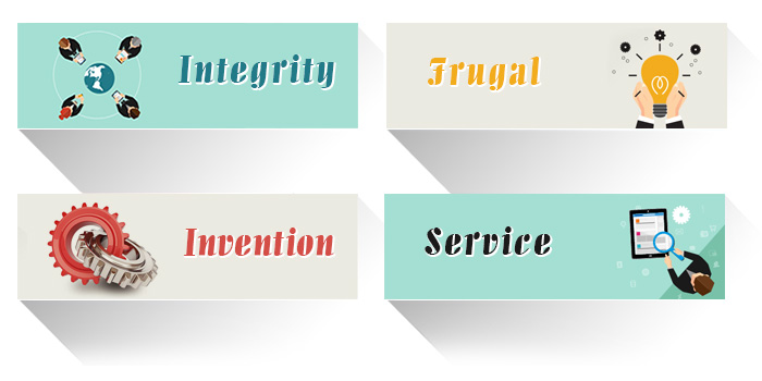 Enterprise culture: Honesty, Innovation, Thrift, Service,
